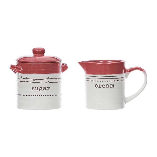 | Red and Ivory Creamer and Sugar Jars |